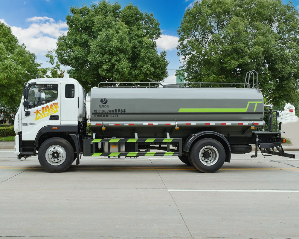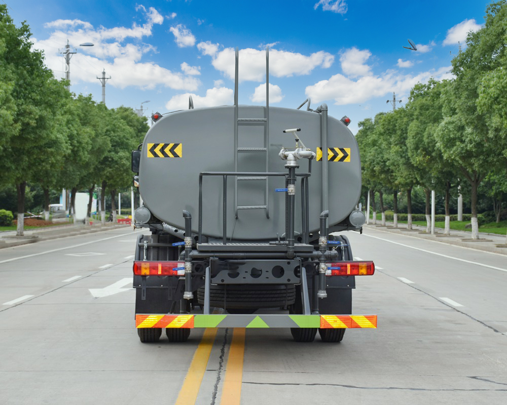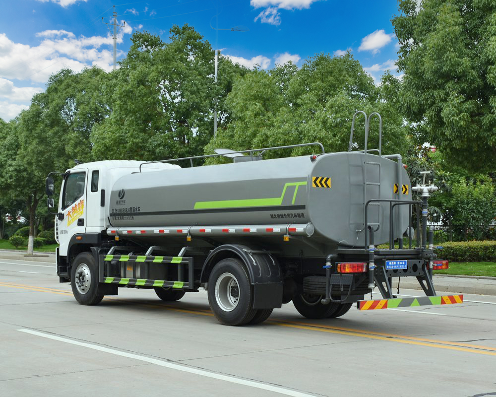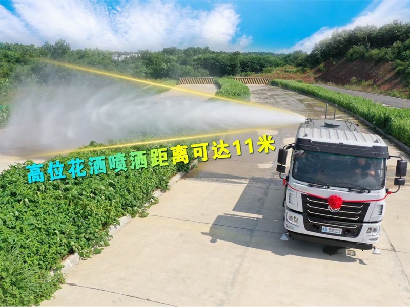 專用功能說明: 用功能配置:罐體實際容積約為14.2立方米,采用武鋼優質碳鋼板卷壓成型。配備專用灑水泵,自吸自排,前噴后灑、側噴、后工作平臺及灑水高壓炮。灑水泵自吸高度為6米左右,整車灑水寬度14米左右,后工作平臺水炮可調成:直沖狀、大雨、中雨、小雨、毛毛雨,有效射程≥28米,整車帶接頭、水位計,自流閥。后工作平臺主管路帶1寸澆花接口,附送2根3米水管,1個爬梯,兩側及后保險杠。