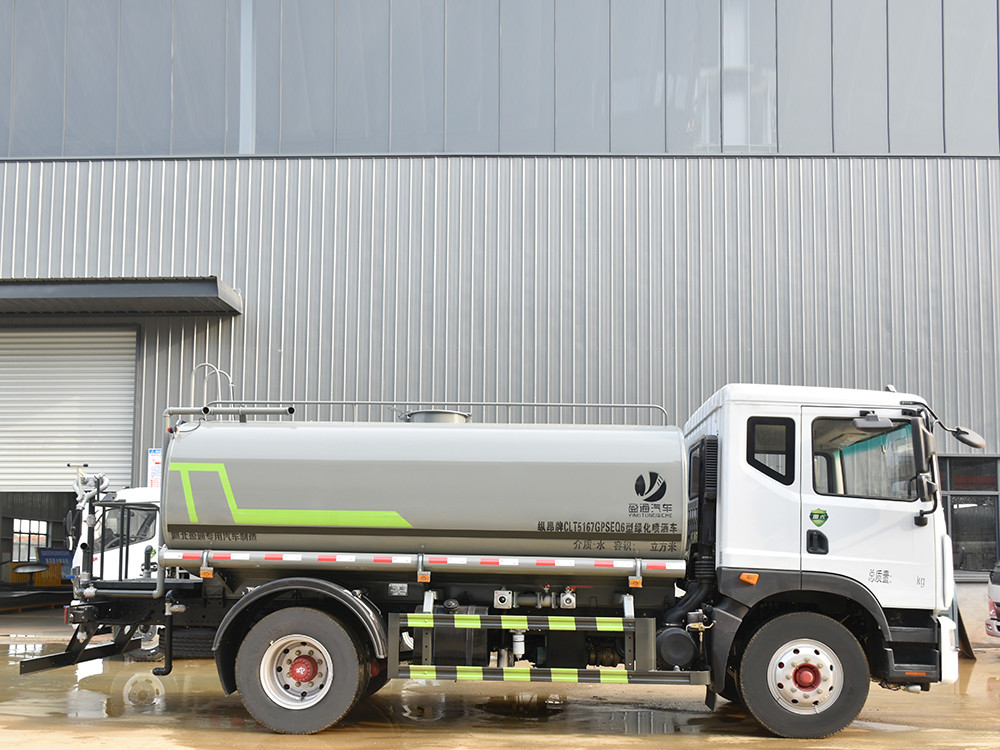 衡水灑水車產品主要技術參數 序號 名稱 型號、規格 1 整車型號 CLT5180GPSEQ6 型綠化噴灑車 2 發動機型號 YCS04200-68 3 發動機馬力/功率 玉柴 200 馬力/147KW 4 發動機排量 4156ML 5 變速箱 法士特 8 檔(帶高低檔) 6 輪胎規格 275 真空胎 7 軸距 3950 8 總質量 18000KG 9 整備質量 6480KG 10 額定載質量 11300KG 11 整車尺寸(長×寬×高) 7.75*2.5*3.3 12 罐體容積 12 方 13 燃料種類 柴油 14 排放標準 國六 15 水泵型號 60/90 16 罐體材質 Q235 碳鋼
