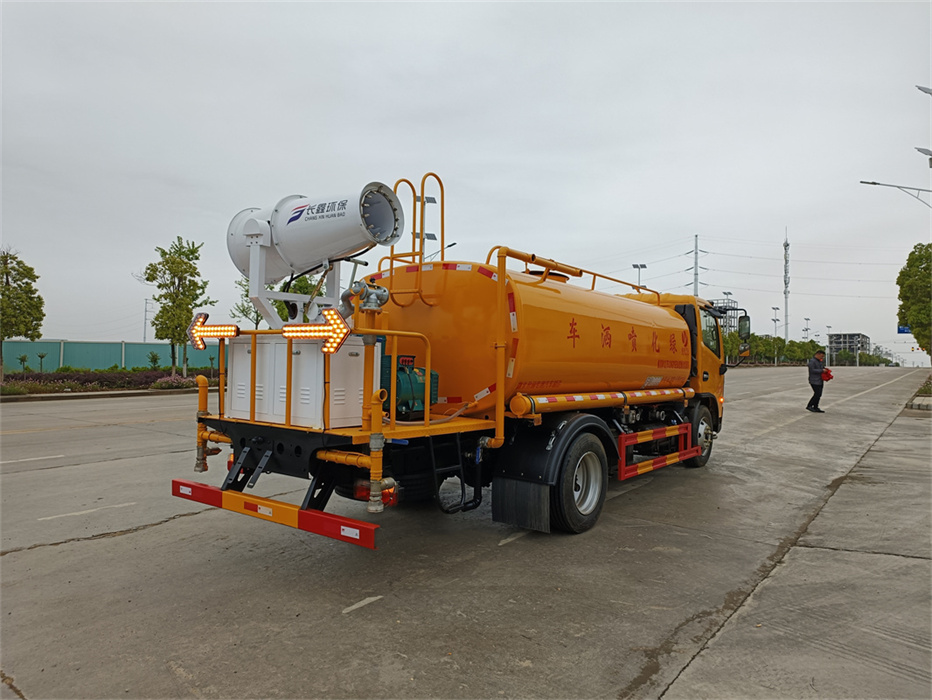 公司灑水車產品標配前噴(鴨嘴)、后沖、后灑、側噴、后置式工作 平臺,平臺上配置綠化水炮(可 360°旋轉,既可以調成柱狀,也可 以調成霧狀,更可以調成直沖狀、大雨、中雨、小雨、毛毛雨),配 備優質大功率專用灑水泵(可自吸自排,可從河里或池塘抽水到罐體), 取力器,雜物過濾網,消防接口,自流球閥系統、取力器、球閥、濾網 均為國家標準產品,主管道加粗,法蘭墊、法蘭盤加厚,大通徑球閥。 整體具備性能優良安全可靠、效率高、流量大、維修方便等特點