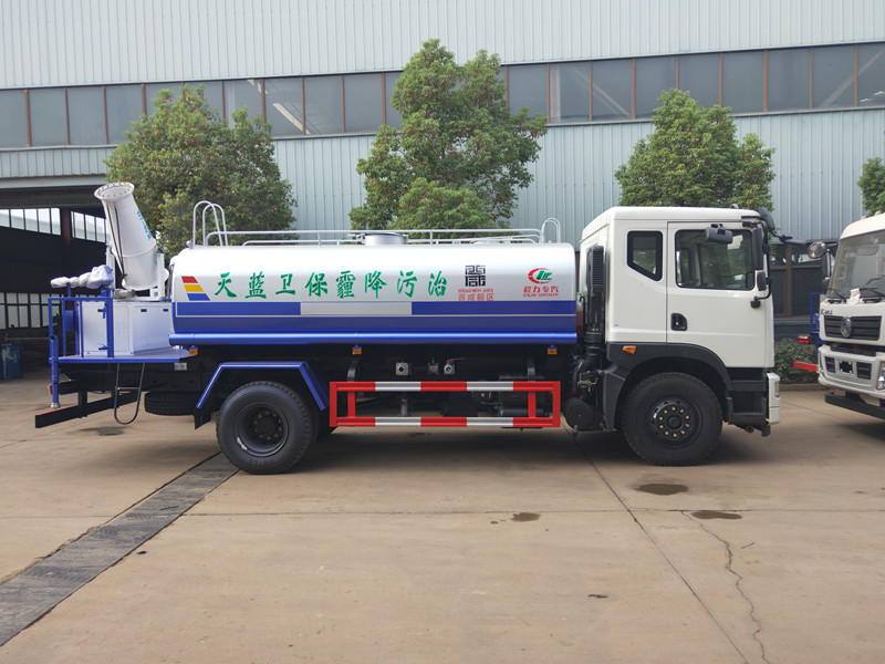 東風抑塵車上裝配置:配備大功率灑水泵,具有自吸自排功能,垂直吸程>6米。帶前部沖洗路面噴灑裝置、后部扇形降塵噴灑裝置,兩側面噴灑裝置,后部工作平臺、平臺上安裝綠化灑水炮(炮噴射形狀可調),可調直沖狀、大雨、中雨、毛毛雨,可連續調節,自流閥及消防接頭各1個、水管3米2根。罐體內做環氧樹脂防腐處理。