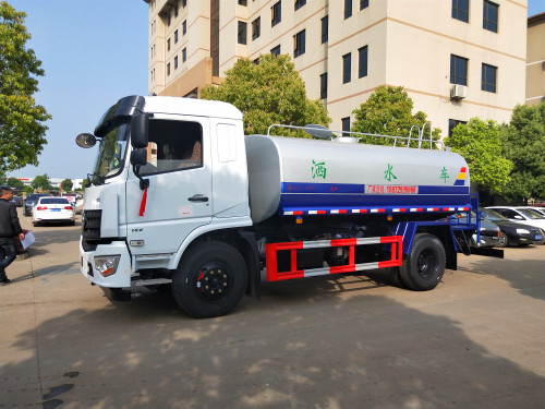 上裝配置:罐體容積為8-10立方灑水車,罐體鋼板為4mm碳鋼Q235材質(zhì),罐內(nèi)隔板具有防波作用,以減輕汽車行駛時(shí)罐體液體沖擊,罐體及整車外形尺寸按照公告。帶大功率專用灑水泵,泵可自吸自排,整車前沖、后灑、側(cè)噴、帶65消防接口,后平臺(tái)帶綠化灑水炮,灑水炮可全方位旋轉(zhuǎn),可連續(xù)調(diào)成直沖狀、大雨、小雨、毛毛雨;前封頭帶水位計(jì),后平臺(tái)主管路帶1寸澆花接口,后爬梯。平臺(tái)后部帶小安全告知牌:“隨時(shí)停車,注意安全”,帶兩根水管及陰陽(yáng)端。罐體顏色:上白/下藍(lán),銀灰/銀藍(lán),罐體兩側(cè)噴“灑水車、綠化噴灑車”字樣,貼反光標(biāo)示。灑水車可加裝前沖后灑氣動(dòng)閥駕駛室控制、可加裝霧炮機(jī)組發(fā)電機(jī)組噴霧降塵裝置、車頭可加裝推雪雪鏟、雪滾裝置街道、公路除雪等。