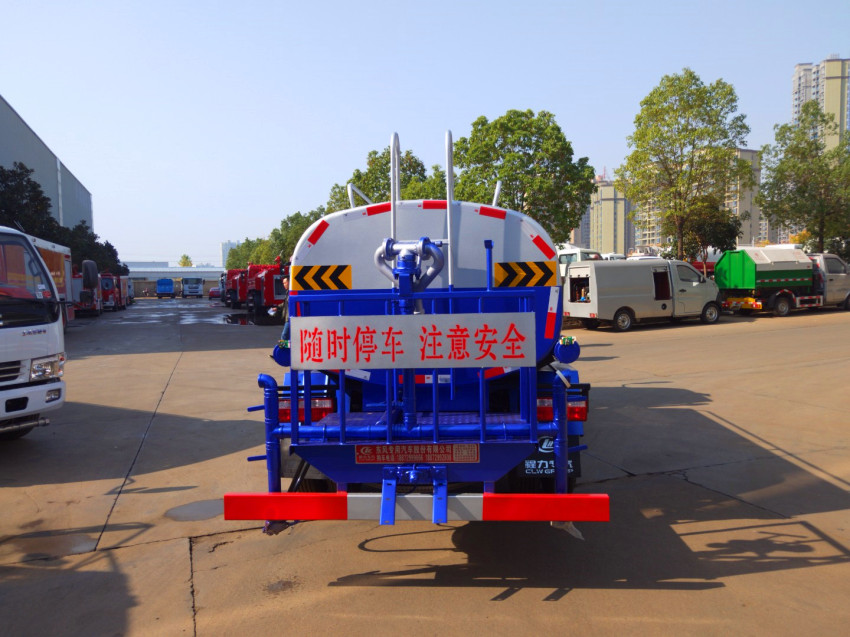 國五東風(fēng)多利卡灑水車,罐體容積5立方米,該車具有免征公告(可免交車輛購置稅)。采用武鋼4mm優(yōu)質(zhì)碳鋼板一次卷壓成型,完全做到無縫成型。罐體內(nèi)設(shè)多道防波隔板,采用高壓氣體試漏檢測,使罐體具有強度高,重心穩(wěn),車輛運載安全平穩(wěn)。罐體外表為烤漆,罐體及各保險杠貼紅白色視覺反光條,罐體兩側(cè)噴“綠化灑水車”字樣(可按您的要求噴繪字樣),罐體顏色出廠為上白下綠或上白下藍(可按您的要求噴繪顏色)。