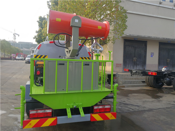 小型抑塵車是集灑水與噴霧功能于一身,即可以使用噴霧大炮對空氣中懸浮物進行高空遠射程噴出細霧,將污染物帶至地面以恢復空氣質量,還可進行路面沖洗、綠化噴灑、澆水、打藥、應急消防、抽水排水等;是大型社區、工礦企業、園林綠化、城市環衛的理想用車。相比普通灑水車,噴出的水霧顆粒更為細小,在風機作用下將水霧精準拋射至目標。“霧炮”噴出的水霧對空氣中的塵埃有較強的穿透力,與飄起的塵埃接觸時形成一種潮濕霧狀體,從而達到綠化除塵、抑制揚塵的效果,有效有效控制PM2.5,二氧化氮和臭氧污染等,改善城市空氣環境。