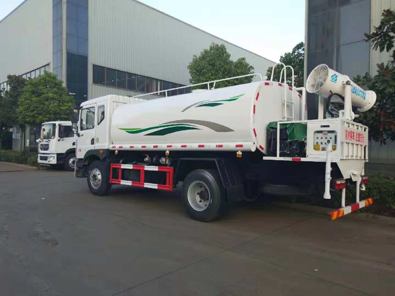 東風多利卡D9噴霧抑塵灑水車_抑塵車多少錢一輛;我公司生產(chǎn)的東風多利卡D9噴霧抑塵灑水車下線檢測了。車款車型選用東風多利卡D9系列單橋底盤,3950mm軸距,新款排半駕駛室,康明斯ISB180 50六缸發(fā)動機,國五排放,250mm車架,氣制動,動力轉(zhuǎn)向,離合助力,空調(diào),電動窗,中控鎖,ABS,8噸后橋,4噸前橋,東風六檔變速箱,9.00R20鋼絲胎。選配30米噴霧抑塵機。罐體用5MM碳鋼板制作,罐內(nèi)隔板具有防波作用,以減低汽車行駛時罐體液體的沖擊。整車帶一個專用灑水泵(垂直吸程6米),灑水寬度14米,射程28米。多功能灑水車配備2個前沖(噴)(能將路面泥巴、塵土、垃圾沖干凈);2個后灑(能均勻地將水灑在路面,一次灑水寬度14米)、2個側(cè)噴(花灑)(能均勻地將路旁綠化帶澆灌)、帶1個后工作平臺,平臺上安裝1個綠化灑水高炮(灑水炮可全方位旋轉(zhuǎn),可連續(xù)調(diào)成直沖狀、大雨、小雨、毛毛雨,霧狀可調(diào)節(jié)沖洗高大樹木),引水時間<5min,流量90m3/h。帶1個消防接頭,帶1個自流閥,1個過濾裝置、人性化爬梯及側(cè)防護欄,安裝灑水音樂喇叭。