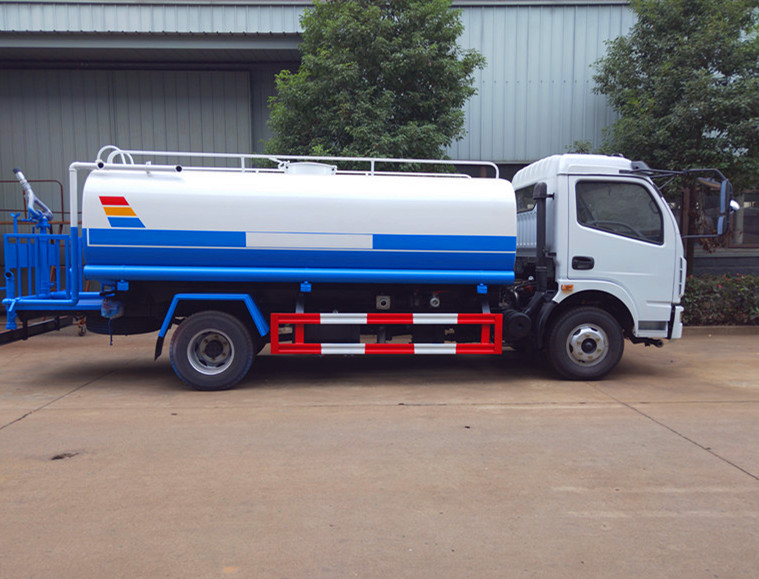 東風大多利卡8.7噸灑水車上裝配置:罐體有效容積8.7立方,標配大功率專用灑水泵,前沖、后灑、側噴、65消防接口,后平臺高射水泡,后高位花灑兩個,可以選裝后霧泡機,單獨選裝不帶后灑水操作平臺,前封頭水位計,后平臺主管路帶1寸澆花接口,后爬梯。平臺后部帶小安全告知牌:“隨時停車,注意安全”,帶兩根水管及陰陽端。