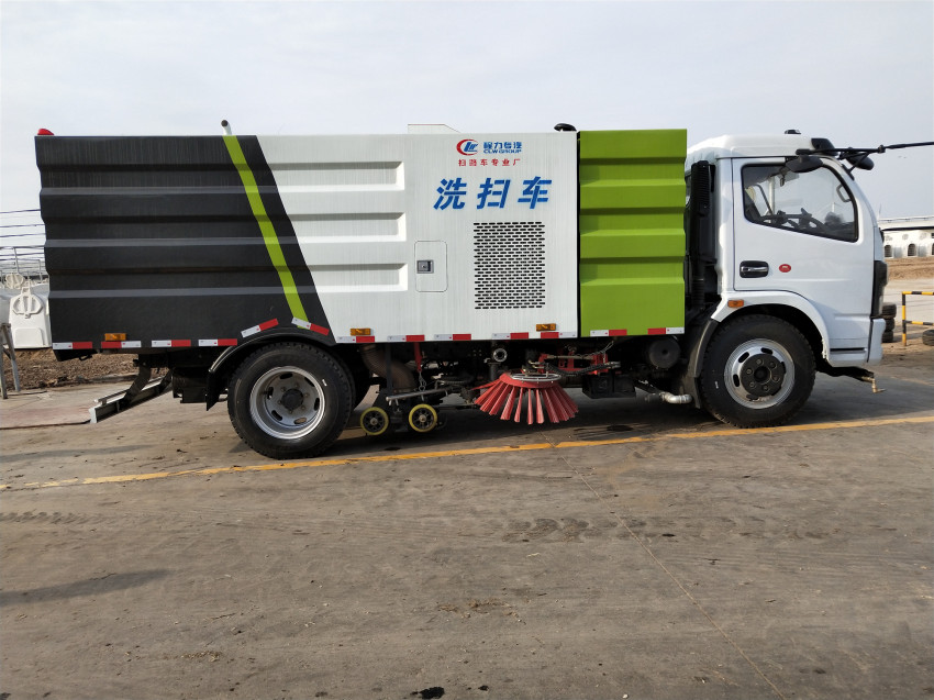 洗掃車具有路面清洗、路面清掃 路緣和路緣石立面洗刷、低壓沖洗、噴霧除塵等多功能。有“全洗掃”、 “左洗掃”、 “右洗掃”、 “全掃”、 多種作業(yè)模式可選擇。選擇“全洗掃”模式清洗廣場和路面,清洗效率高效果好,洗凈率達(dá)95%以上。選擇“左洗掃”或“右洗掃”模式清洗路面和路緣 。需要進(jìn)行路面清掃或路面保潔作業(yè)時,可選擇掃路模式。需要噴霧除塵時,可開啟噴霧裝置,進(jìn)行噴霧除塵作業(yè)?梢韵駷⑺囈粯訉β访孢M(jìn)行低壓沖洗作業(yè)。