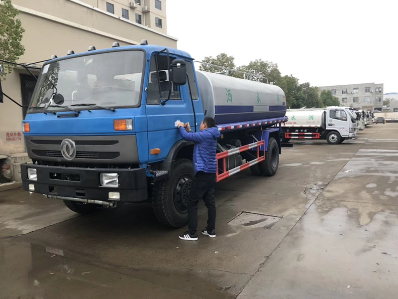 3.灑水車產(chǎn)品備注:灑水泵可起到吸水和加壓排水功能,可將池塘的水直接罐也可直接從城市街道的消防栓上連接注水,罐。所有灑水車同時(shí)具有運(yùn)水或裝載其他(如:牛奶、食用水)功能,罐體外壁經(jīng)發(fā)泡或巖棉處理后具有保溫功能。灑水車也可作噴藥車使用,可進(jìn)行專業(yè)的防腐防銹處理,選裝不銹鋼泵,管道,水炮及不銹鋼罐體。對(duì)灑水車有特殊要求的用戶請(qǐng)?zhí)崆案嬷?我們可按用戶要求設(shè)計(jì)改裝。【產(chǎn)品信息圖片僅供用戶選購(gòu)參考,產(chǎn)品以實(shí)際提供為準(zhǔn)】三、操作流程:1、使用前的工作 (1)檢查變速箱內(nèi)油油面,以到油面螺塞孔的下緣為準(zhǔn),不足時(shí)添加齒輪油。 (2)檢查變速箱操縱桿,使之處于空檔位置,檢查取力箱操縱手柄位置,使之為水平向右位 置,使之為水平向右位置,檢查油門控制器,使其。