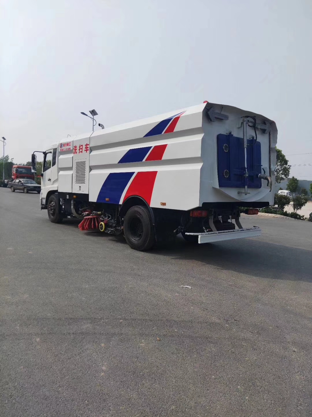 東風天錦掃路車中置4掃盤、后置吸盤、三洋馬達、康明斯副發動機、施耐德控制開關、海普瑞思電磁閥組、無極變速自動離合器、免維護離心式風機、不銹鋼垃圾箱、北極星電子水泵、垃圾箱舉升自卸、尾部LED箭頭燈、手動泵應急系統。可選裝前沖后灑、垃圾箱自潔功能、倒車影像作業監控、前置雪鏟、掃雪滾。