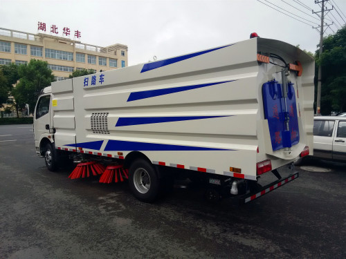 東風大多利卡掃路車(2.5水/5塵)掃路車清掃方式:四掃盤與吸盤進行吸掃結合,吸掃能力卓越;兩側掃把可同時工作,也可單側獨立工作。清掃裝置機構簡潔可靠,帶避讓防撞功能。