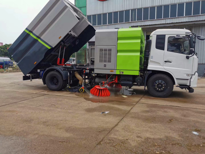 東風(fēng)天錦洗掃車具有路面清洗、路面清掃路緣和路緣石立面洗刷、低壓沖洗、噴霧 除塵等多功能。有“全洗掃”、 “左洗掃”、 “右洗掃”、 “全掃”、 多種作 業(yè)模式可選擇。選擇“全洗掃”模式清洗廣場(chǎng)和路面,清洗效率效果好,洗 凈率達(dá) 95%以上。選擇“左洗掃”或“右洗掃”模式清洗路面和路緣 。需要進(jìn) 行路面清掃或路面保潔作業(yè)時(shí),可選擇掃路模式。需要噴霧除塵時(shí),可開啟噴霧裝置,進(jìn)行噴霧除塵作業(yè)。可以像灑水車一樣對(duì)路面進(jìn)行低壓沖洗作業(yè)。