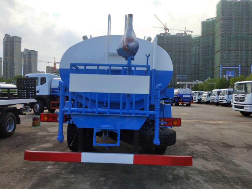 罐體有效容積14噸,罐體采用優質碳鋼制作,罐體材料厚度4毫米,安裝灑水車專用灑水泵帶自吸自排功能。尾部帶有安全操作平臺,帶消防接口,自流口,兩根輸水管。