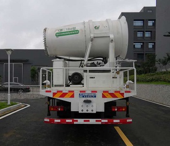 灑水車專用功能:前沖后灑,側噴,高位花灑,罐體后帶工作平臺加護欄,平臺上安裝綠化灑水高炮,射程28米左右,可調節多種形態(大雨、中雨、霧狀),配備大功率專用灑水泵,泵可吸自排,帶自流閥,帶消防接頭,帶過濾裝置,兩根吸水管。