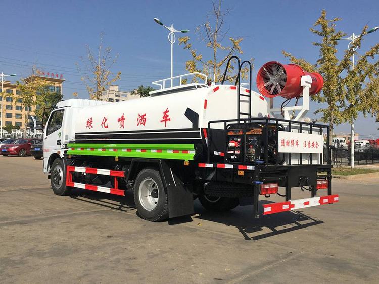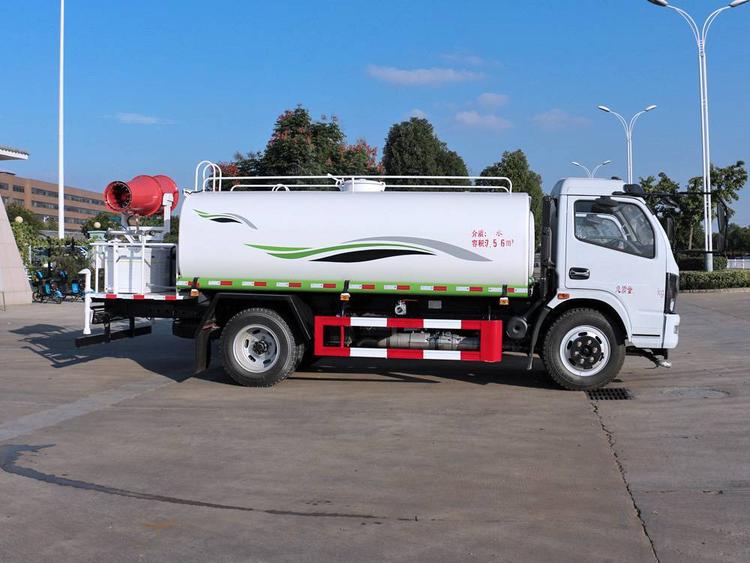 霧炮灑水車上裝配置:碳鋼4mm厚,實際容積9立方,前沖、后灑、側噴、平臺高炮,大通徑球閥,自吸式灑水泵,LED邊燈,音樂喇叭,新規防飛濺,選配30米霧炮機、可抑塵、可噴藥打藥消毒等。