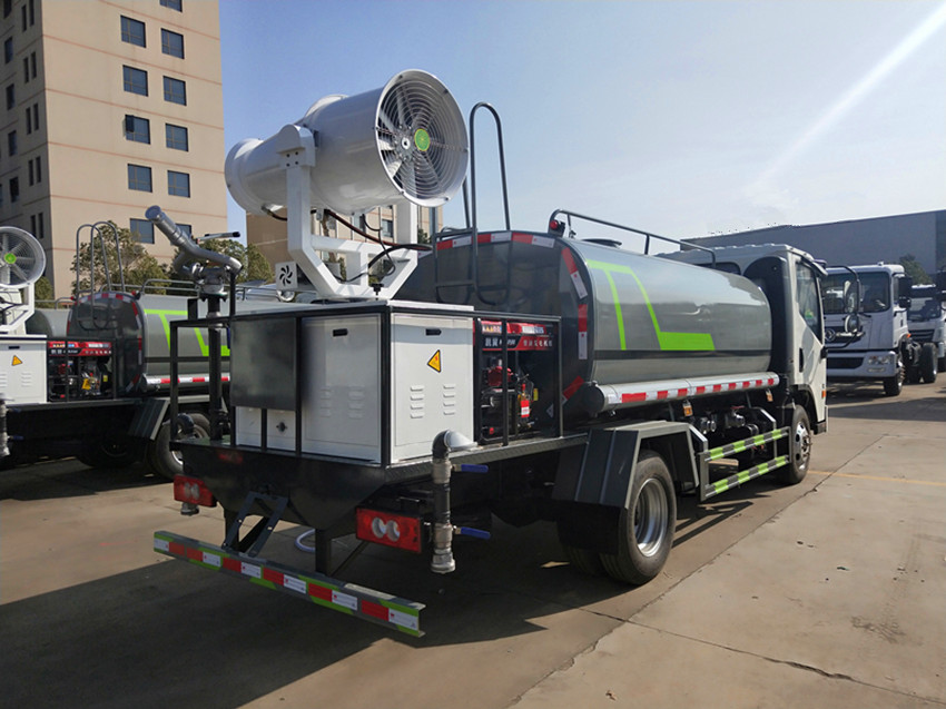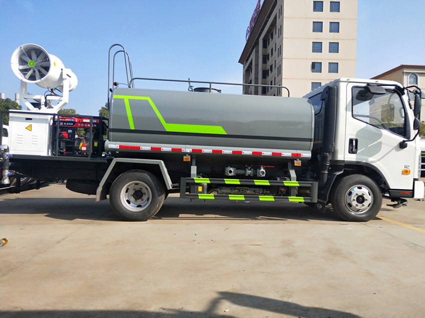 抑塵車配備大功率專用灑水泵,泵可自吸自排,安裝過濾網,帶消防接口,可通過消防栓進水,帶自流閥,隨車選裝20米綠化卷盤,可噴灑農藥,罐體金屬漆。罐體有橢圓和方圓罐兩種,可根據用戶的要求定做