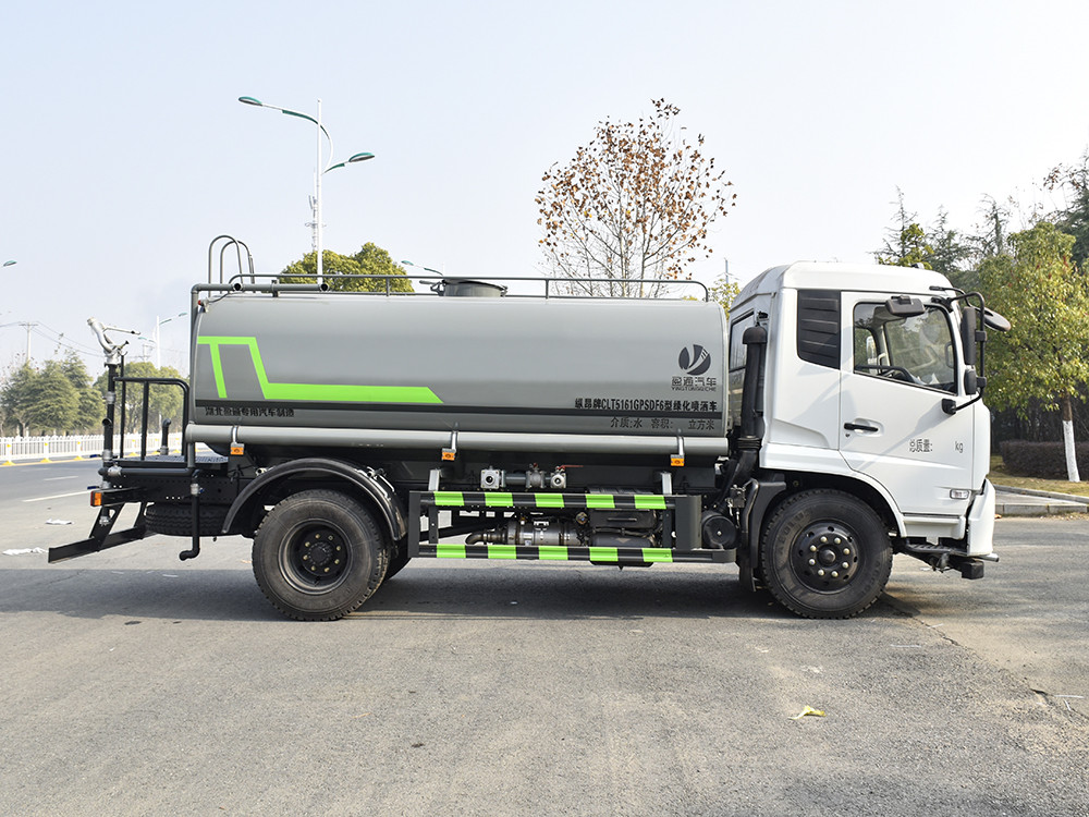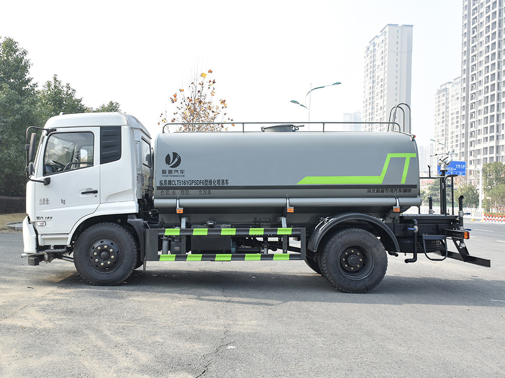 東風(fēng)天錦 12 噸灑水車產(chǎn)品標(biāo)配前噴(鴨嘴)、后沖、后灑、側(cè)噴、后置式工作 平臺(tái),平臺(tái)上配置綠化水炮(可 360°旋轉(zhuǎn),既可以調(diào)成柱狀,也可 以調(diào)成霧狀,更可以調(diào)成直沖狀、大雨、中雨、小雨、毛毛雨),配 備優(yōu)質(zhì)大功率專用灑水泵(可自吸自排,可從河里或池塘抽水到罐體), 取力器,雜物過(guò)濾網(wǎng),消防接口,自流球閥系統(tǒng)、取力器、球閥、濾網(wǎng) 均為國(guó)家標(biāo)準(zhǔn)產(chǎn)品,主管道加粗,法蘭墊、法蘭盤(pán)加厚,大通徑球閥。 整體具備性能優(yōu)良安全可靠、效率高、流量大、維修方便等特點(diǎn)。