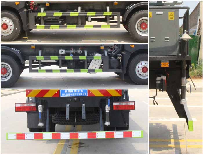 備注 | 該車主要用于城鄉(xiāng)園林綠化噴灑作業(yè);主要裝置為水罐及噴灑裝置;罐體總?cè)萘?10.7立方米;罐體有效容積:10.2立方米;罐體外形尺寸(長×長軸×短軸)(mm):4800×2300×1300.ABS系統(tǒng)生產(chǎn)廠家,型號:焦作博瑞克控制技術(shù)有限公司,J ABS;襄陽東風(fēng)隆誠機(jī)械有限責(zé)任公司,ABS/ASR-24V-4S/4M.側(cè)、后防護(hù)材料均為:Q235碳鋼,連接方式均為:螺栓連接,后部防護(hù)截面尺寸(mm):120×50,后部防護(hù)離地高度(mm):480.隨底盤選裝限速裝置,限速89km/h.隨底盤選裝燃油箱,電瓶,尿素罐,儲氣筒左右安裝位置,選裝噴霧裝置樣式.選裝箭頭燈裝置,選裝前部電子水炮裝置樣式,選裝前部不帶電子水炮;當(dāng)前部帶電子水炮時,前伸500mm,整車長度為9100mm,8550mm;當(dāng)前部不帶電子水炮時,前伸為0mm,整車長度為8600mm,8050mm.選裝罐體頂部高位花灑裝置及方形罐口,選裝尾部自流口裝置,選裝工具箱.采用底盤4500mm軸距改裝.后軸僅采用鋼板彈簧懸架. | ||