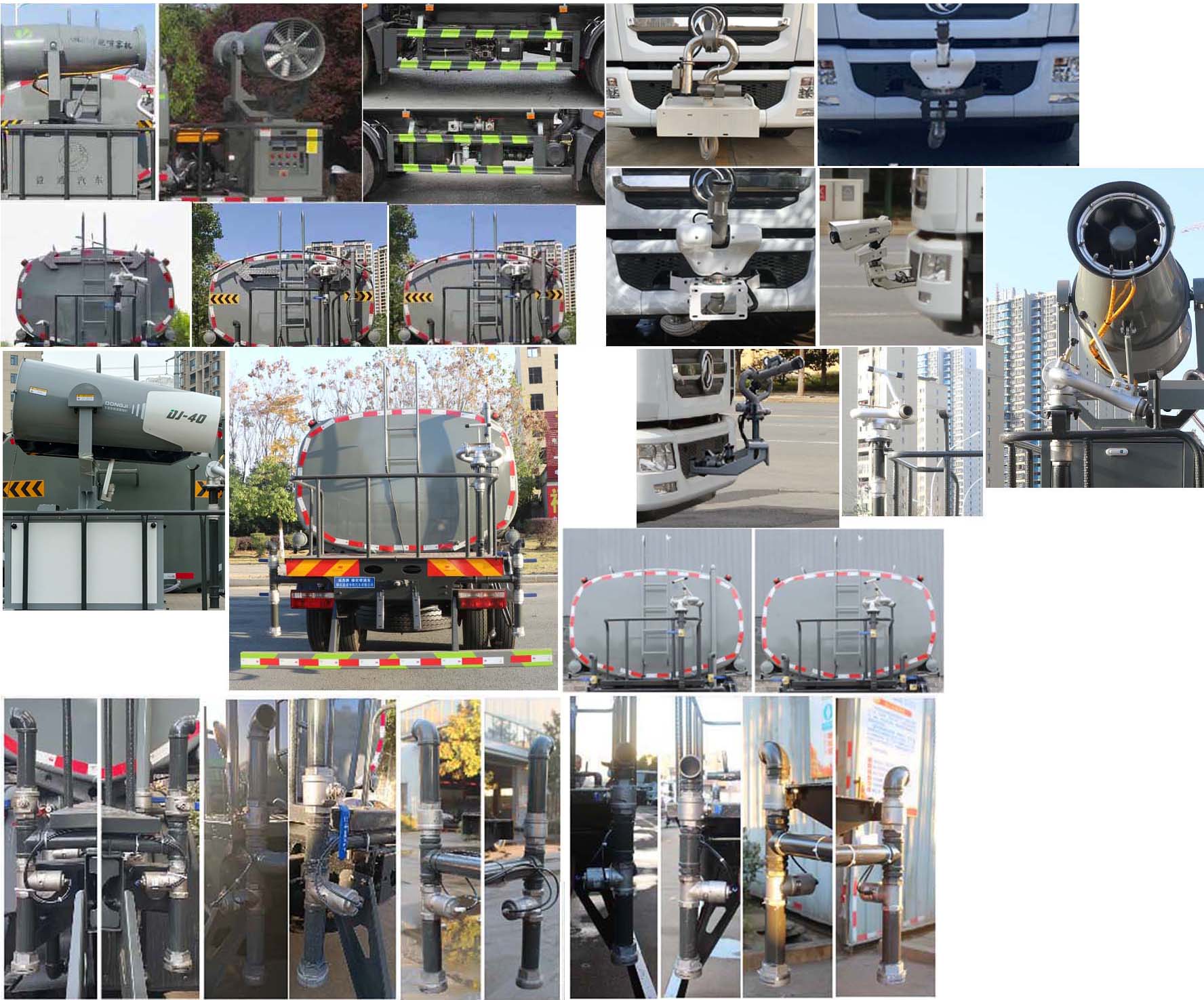 東風D9灑水車上裝配置: 1、罐體約為 12 方, 2、邊燈帶電,罐體尾部上方標配 2 個紅色示寬燈, 3、標配前噴為鴨嘴直沖,標配后沖,用戶可根據自己的需求,來調 整對沖位置。 4、沖孔平臺(承載能力加強),炮筒后蓋為定制型螺栓卡扣, 5、前噴、后沖、后灑、側噴,綠化高炮開關球閥均采用工程專用 50 大通徑銅球閥, 6、新式軸承式水炮,更加耐用, 7、60-90 型水泵, 8、防腐法蘭墊片, 9、鋁制后灑,不易炸開 10、罐體自動焊(美國林肯焊機及電源),拼板自動焊接,封頭環 縫焊接,無氣孔,焊縫美觀。 11、側護網、后保險杠、均為螺栓連接,方便拆卸,維修方便。 12、塑料擋泥板,替代鐵擋泥板,更加輕便,用螺栓連接,方便拆 卸。 13、前部、后部主管連接處為 6 孔圓法蘭,不易沖墊