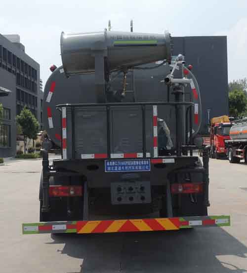東風華神12方灑水車罐體約為 12 方, 2、邊燈帶電,罐體尾部上方標配 2 個紅色示寬燈, 3、標配前噴為鴨嘴直沖,標配后沖,用戶可根據自己的需求,來調 整對沖位置。 4、沖孔平臺(承載能力加強),炮筒后蓋為定制型螺栓卡扣, 5、前噴、后沖、后灑、側噴,綠化高炮開關球閥均采用工程專用 50 大通徑銅球閥, 6、新式軸承式水炮,更加耐用, 7、60-90 型水泵, 8、防腐法蘭墊片, 9、鋁制后灑,不易炸開 10、罐體自動焊(美國林肯焊機及電源),拼板自動焊接,封頭環 縫焊接,無氣孔,焊縫美觀。 11、側護網、后保險杠、均為螺栓連接,方便拆卸,維修方便。 12、塑料擋泥板,替代鐵擋泥板,更加輕便,用螺栓連接,方便拆 卸。 13、前部、后部主管連接處為 6 孔圓法蘭,不易沖墊