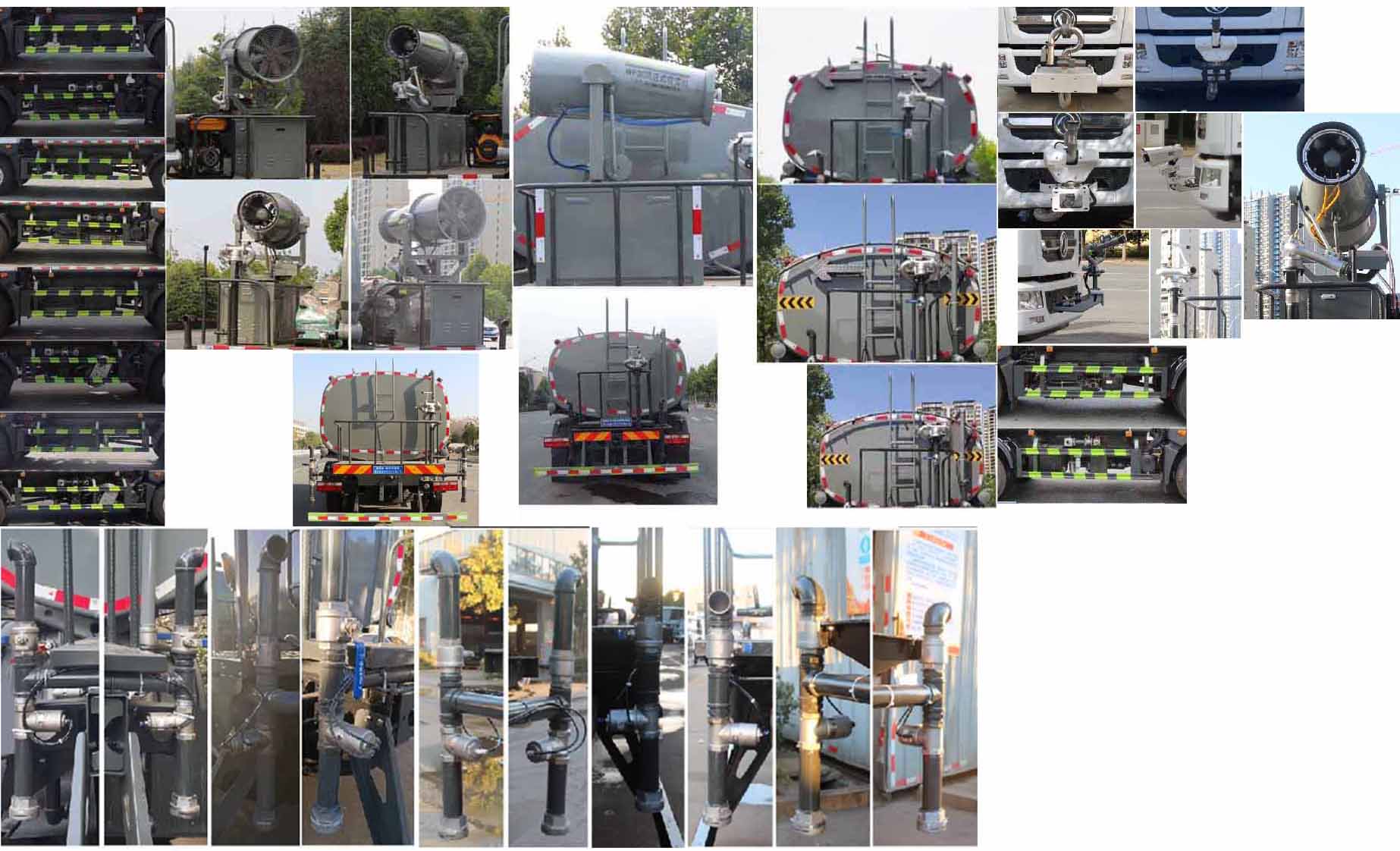 東風多利卡D9灑水車上裝配置: 1、罐體約為 15 方, 2、邊燈帶電,罐體尾部上方標配 2 個紅色示寬燈, 3、標配前噴為鴨嘴直沖,標配后沖,用戶可根據自己的需求,來調 整對沖位置。 4、沖孔平臺(承載能力加強),炮筒后蓋為定制型螺栓卡扣, 5、前噴、后沖、后灑、側噴,綠化高炮開關球閥均采用工程專用 50 大通徑銅球閥, 6、新式軸承式水炮,更加耐用, 7、60-90 型水泵, 8、防腐法蘭墊片, 9、鋁制后灑,不易炸開 10、罐體自動焊(美國林肯焊機及電源),拼板自動焊接,封頭環 縫焊接,無氣孔,焊縫美觀。 11、側護網、后保險杠、均為螺栓連接,方便拆卸,維修方便。 12、塑料擋泥板,替代鐵擋泥板,更加輕便,用螺栓連接,方便拆 卸。 13、前部、后部主管連接處為 6 孔圓法蘭,不易沖墊