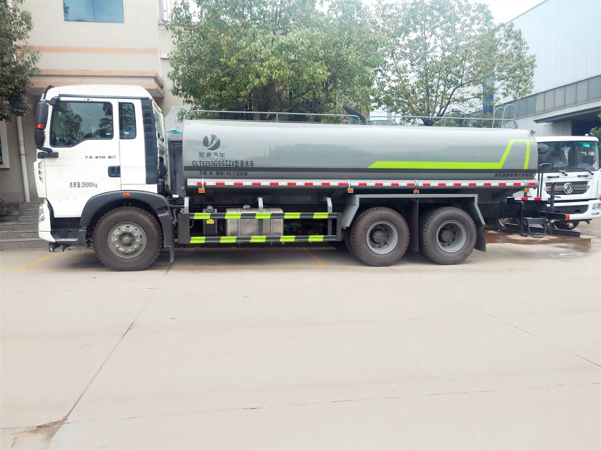 重汽20噸灑水車(chē)罐體為橢圓形或方形,采用武鋼優(yōu)質(zhì)碳鋼板制成,罐體倉(cāng)內(nèi)1.5米一道隔板,具有防波防蕩作用,還可按用戶要求進(jìn)行專業(yè)的防腐防銹處理,罐體外可用發(fā)泡或巖棉加裝保溫層起保溫功能。可選裝藥盤(pán),藥泵、高壓噴藥設(shè)備、非車(chē)帶泵動(dòng)力等.、罐內(nèi)防腐防銹、多方位進(jìn)出水接頭、氣動(dòng)閥、警燈等先進(jìn)設(shè)施,以滿足不同用戶需求。