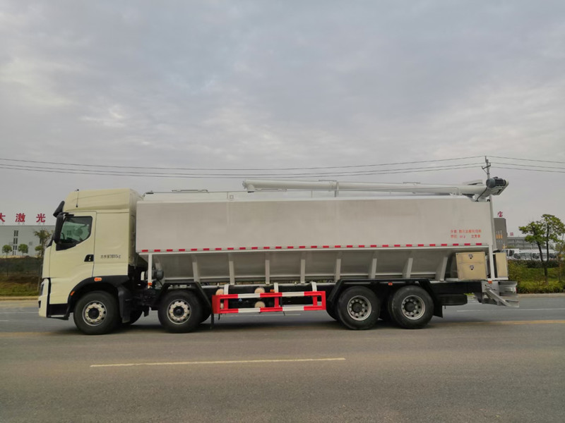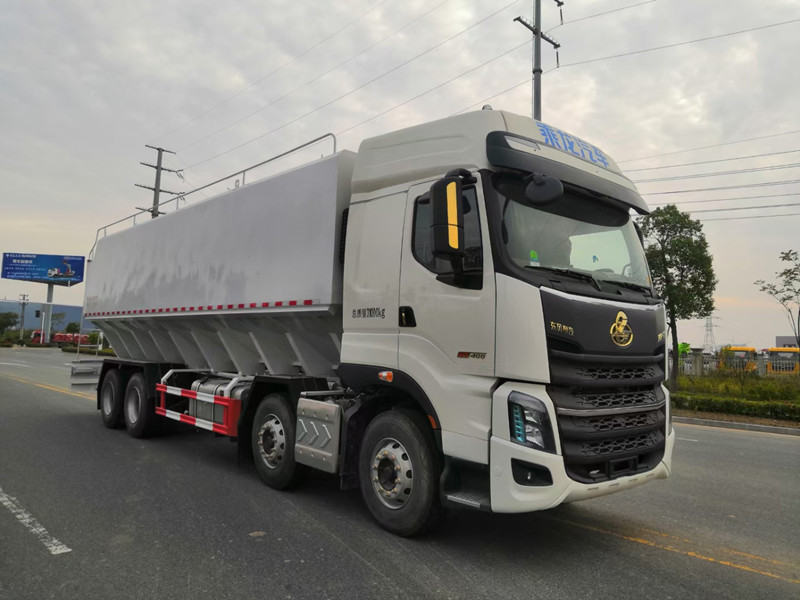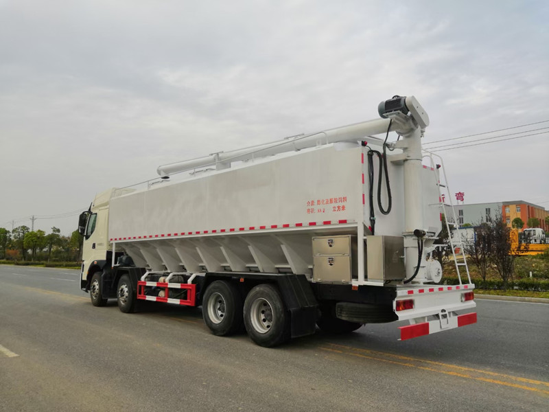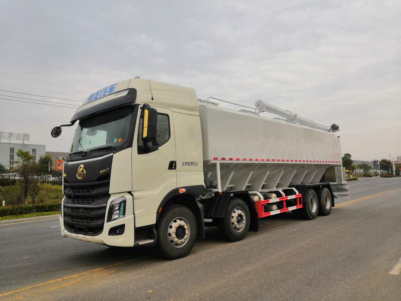 柳汽乘龍前四后八散裝飼料運輸車/40方養(yǎng)殖場飼料配送車整車型號:XBZ5310ZSLL6,柳汽H7駕駛室,玉柴460馬力國六發(fā)動機,法士特12檔鋁合金變速箱,5.5T雙前橋,440雙后橋,12R22.5,全氣囊懸浮駕駛室,電動玻璃、LCD液晶儀表、自動空調(diào)、真皮多功能方向盤、定速巡航、ABS、中控鎖、自動調(diào)整臂。整車尺寸:12000×2500×3995mm。/40方散裝飼料車
