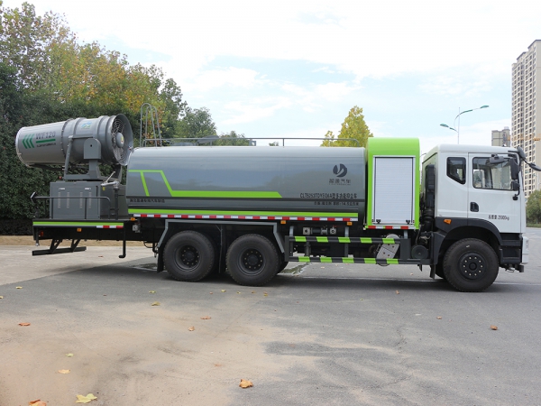 東風大型灑水車-抑塵車整車型號 CLT5253TDYEQ6A 型多功能抑塵車 2 發動機型號 B6.2NS6B260 3 發動機馬力/功率 康明斯 260 馬力/191KW 4 發動機排量 6200ML 5 變速箱 法士特 8 檔(帶高低檔) 6 輪胎規格 11.00 鋼絲胎 7 軸距 4350+1350 8 總質量 25000KG 9 整備質量 13600KG 10 額定載質量 11205KG 11 整車尺寸(長×寬×高) 10.54*2.5*3.8 12 罐體容積 17 方 13 燃料種類 柴油 14 排放標準 國六 15 水泵型號 60/90 16 罐體材質 Q235 碳鋼