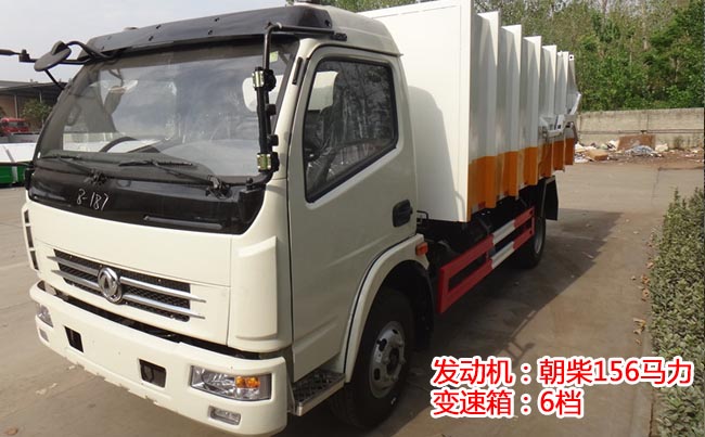 東風多利卡D7對接式垃圾車,D7單排駕駛室,朝柴156馬力發動機,6檔變速箱,.2噸后橋,7.50R16鋼絲胎,氣剎,帶ABS,方向助力。