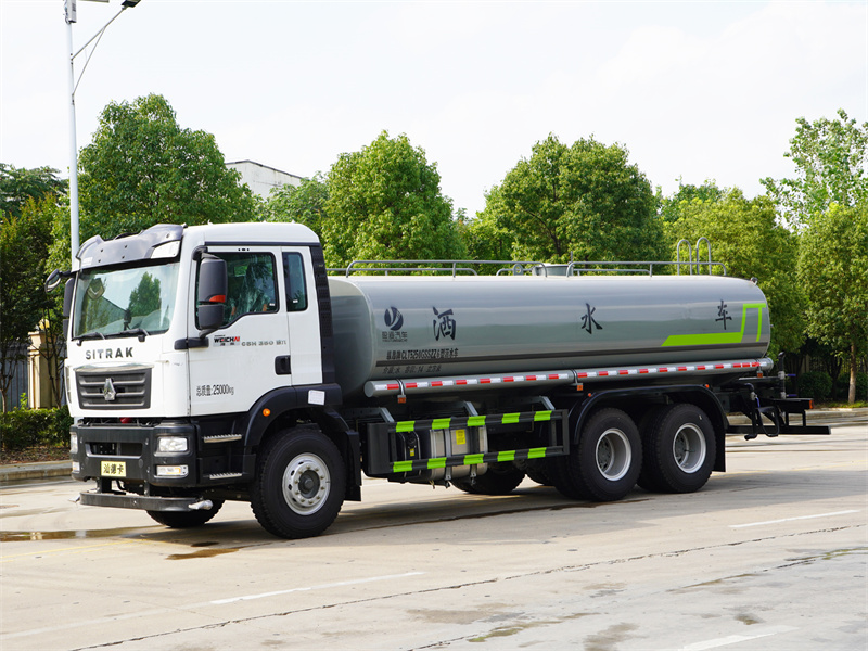 重汽汕德卡18噸灑水車產(chǎn)品標配前噴(鴨嘴)、后沖、后灑、側(cè)噴、后置式工作 平臺,平臺上配置綠化水炮(可 360°旋轉(zhuǎn),既可以調(diào)成柱狀,也可 以調(diào)成霧狀,更可以調(diào)成直沖狀、大雨、中雨、小雨、毛毛雨),配 備優(yōu)質(zhì)大功率專用灑水泵(可自吸自排,可從河里或池塘抽水到罐體), 取力器,雜物過濾網(wǎng),消防接口,自流球閥系統(tǒng)、取力器、球閥、濾網(wǎng) 均為國家標準產(chǎn)品,主管道加粗,法蘭墊、法蘭盤加厚,大通徑球閥。 整體具備性能優(yōu)良安全可靠、效率高、流量大、維修方便等特點。
