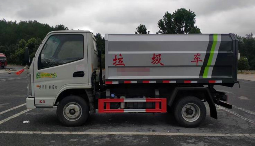 箱體容積3~4立方米,碳鋼邊三底四,國產(chǎn)油泵、多路閥、取力器、油缸,卸料方式為底部雙杠液壓舉升自卸,駕駛室外操作,鐵桶掛架,后門機(jī)械鎖緊,手動開門,可選液壓開門。