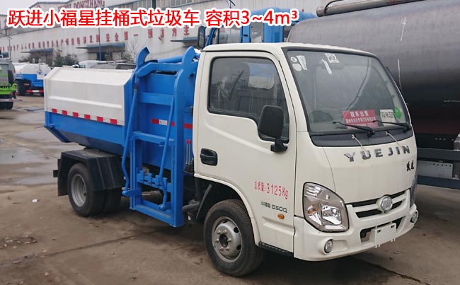 躍進小福星掛桶式垃圾車,南京躍進底盤,柳機88馬力發(fā)動機,5檔變速箱,軸距2.65米,185R14后雙輪輪胎,帶前盤制動,選裝空調(diào),方向助力。