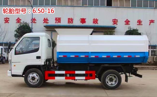容積3~4立方米,密封式箱體結構,頂部前端有進料箱蓋,箱體尾部有后開門,手動機械鎖緊,掛桶裝置位于箱體右側,采用國產液壓系統、多路閥、油缸、高壓軟管、液壓油箱、濾油器、通過這些組合實現專用功能。