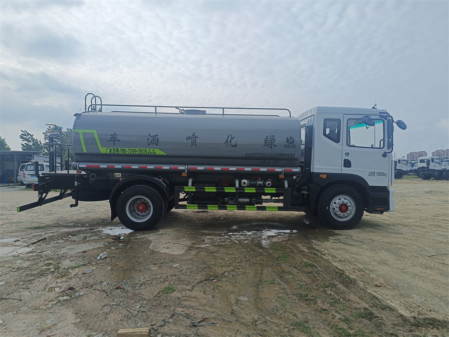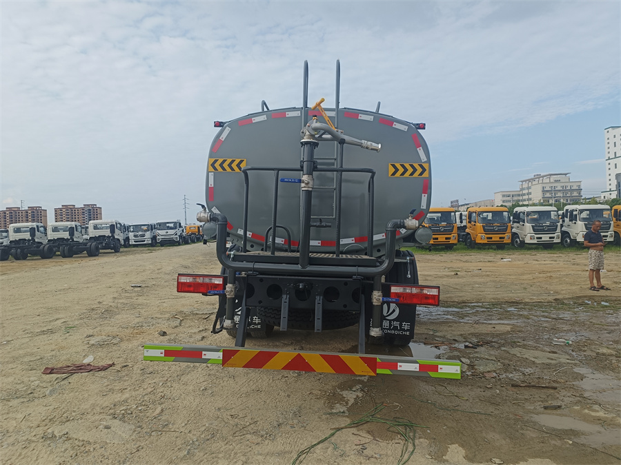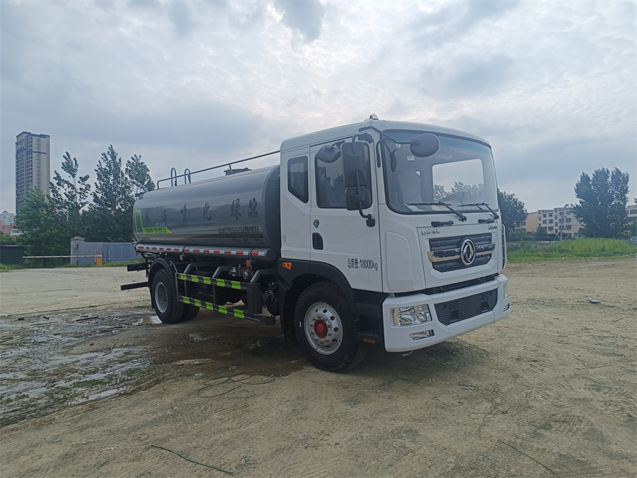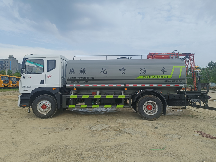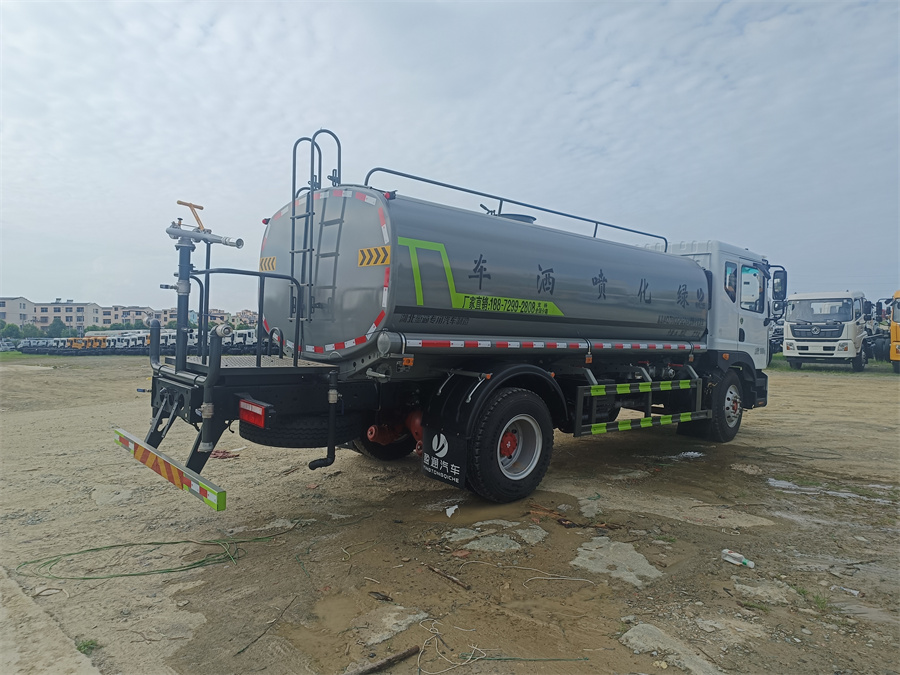產品簡述:縱昂牌 CLT5183GPSEQ6A 型綠化噴灑車標配前噴(鴨嘴)、后對沖、 后灑、側噴、后置式工作平臺,平臺上配置綠化水炮(可 360°旋轉,既可以調 成柱狀,也可以調成霧狀),配備優質大功率專用灑水泵(可自吸自排,可從河 里或池塘抽水到罐體),取力器,雜物過濾網,消防接口,自流球閥系統、取力 器、球閥、濾網均為國家標準產品,主管道加粗,法蘭墊、法蘭盤加厚,大通徑 球閥。整體具備性能優良安全可靠、效率高、流量大、維修方便等特點。