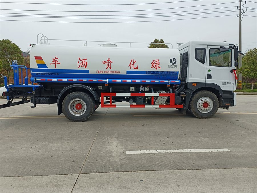 灑水車產(chǎn)品標(biāo)配前噴(鴨嘴)、后沖、后灑、側(cè)噴、后置式工作 平臺,平臺上配置綠化水炮(可 360°旋轉(zhuǎn),既可以調(diào)成柱狀,也可 以調(diào)成霧狀,更可以調(diào)成直沖狀、大雨、中雨、小雨、毛毛雨),配 備優(yōu)質(zhì)大功率專用灑水泵(可自吸自排,可從河里或池塘抽水到罐體), 取力器,雜物過濾網(wǎng),消防接口,自流球閥系統(tǒng)、取力器、球閥、濾網(wǎng) 均為國家標(biāo)準(zhǔn)產(chǎn)品,主管道加粗,法蘭墊、法蘭盤加厚,大通徑球閥。 整體具備性能優(yōu)良安全可靠、效率高、流量大、維修方便等特點(diǎn)。