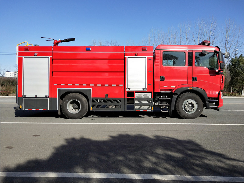 重汽豪沃5噸水罐消防車采用重汽豪沃底盤,平頭雙排駕駛室,液壓翻轉,重汽集團MC05.21-50發動機,210馬力,國六排放,罐體容積4.9立方米;整車結構緊湊,方便靈活,動力性能好,車速高,能自由進出鄉村狹窄道路及小區,具有消防車的套消防功能。