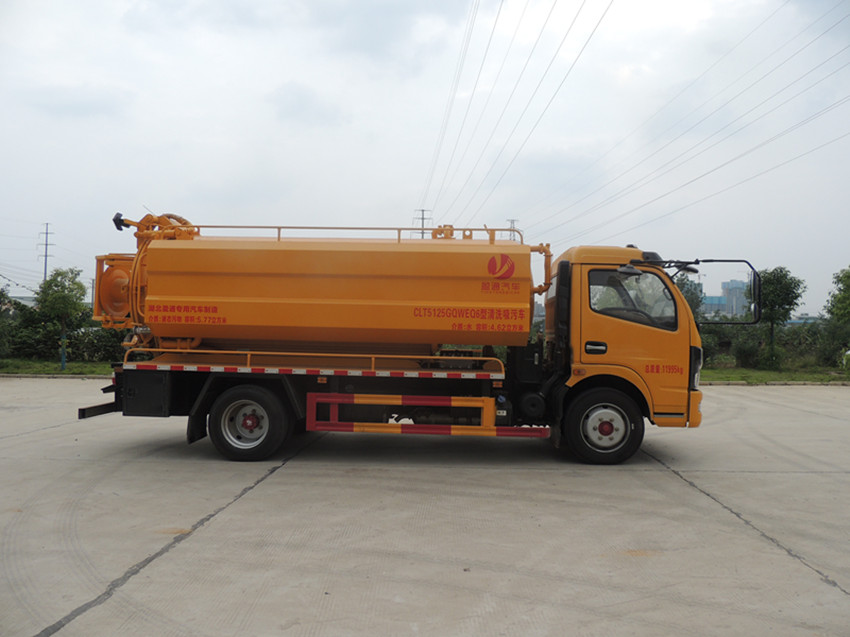 吸污車底盤配置: 采用東風原廠多利卡底盤,白色駕駛室(顏色可選),萬里揚6檔變速箱,軸距3800mm, 245真空胎,原廠abs,帶方向助力,離合助力器,氣剎制動,帶冷暖空調。