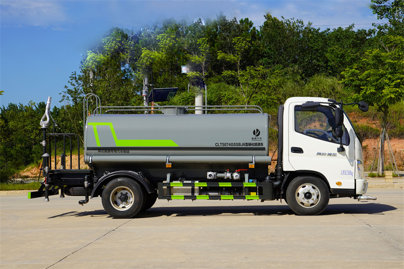 灑水車產品標配前噴(鴨嘴)、后沖、后灑、側噴、后置式工作 平臺,平臺上配置綠化水炮(可 360°旋轉,既可以調成柱狀,也可 以調成霧狀,更可以調成直沖狀、大雨、中雨、小雨、毛毛雨),配 備優質大功率專用灑水泵(可自吸自排,可從河里或池塘抽水到罐體), 取力器,雜物過濾網,消防接口,自流球閥系統、取力器、球閥、濾網 均為國家標準產品,主管道加粗,法蘭墊、法蘭盤加厚,大通徑球閥。 整體具備性能優良安全可靠、效率高、流量大、維修方便等特點。