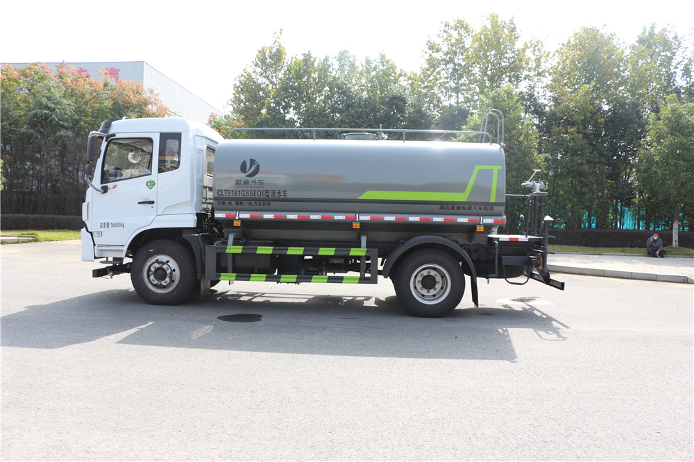 專用功能配置:罐體實際容積約為12.立方米,采用武鋼優質碳鋼板卷壓成型。配備專用灑水泵,自吸自排。前噴后灑、側噴、后工作平臺及灑水高壓炮。灑水泵垂直自吸高度為6米左右,整車灑水寬度14米左右,后工作平臺水炮可調成:直沖狀、大雨、中雨、小雨、毛毛雨,有效射程≥28米,整車帶接頭、水位計,自流閥。后工作平臺主管道有一個一寸的澆花接口,附送2根3米水管,1個爬梯,兩側及后保險杠。