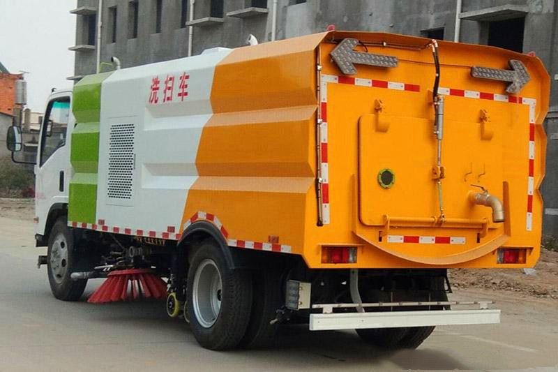 11、五十鈴700P洗掃車(chē)|五十鈴5噸多功能洗掃車(chē)的垃圾箱內(nèi)帶有自潔功能,在垃圾傾倒完成后可將箱內(nèi)的殘留垃圾沖洗干凈,減輕環(huán)衛(wèi)工人的負(fù)擔(dān)。