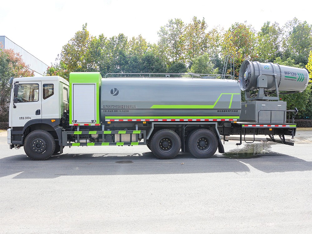 東風(fēng)華神 大型17方抑塵車-霧炮車產(chǎn)品介紹簡(jiǎn)述 抑塵車又稱為綠化噴灑車、多功能灑水車、園林綠化灑水車。抑 塵車適合于各種路面沖洗,樹木、綠化帶、草坪綠化,道路、廠礦企業(yè) 施工建設(shè),高空建筑沖洗。抑塵也可以作為運(yùn)水車使用,最常見(jiàn)的車 型有綠化噴灑車、多功能灑水車、綠化灑水車幾大類。 我公司產(chǎn)品標(biāo)配前噴(鴨嘴)、后沖、后灑、側(cè)噴、后置式工作 平臺(tái),平臺(tái)上配置綠化水炮(可 360°旋轉(zhuǎn),既可以調(diào)成柱狀,也可 以調(diào)成霧狀,更可以調(diào)成直沖狀、大雨、中雨、小雨、毛毛雨),配 備優(yōu)質(zhì)大功率專用灑水泵(可自吸自排,可從河里或池塘抽水到罐體), 取力器,雜物過(guò)濾網(wǎng),消防接口,自流球閥系統(tǒng)、取力器、球閥、濾網(wǎng) 均為國(guó)家標(biāo)準(zhǔn)產(chǎn)品,主管道加粗,法蘭墊、法蘭盤加厚,大通徑球閥。 整體具備性能優(yōu)良安全可靠、效率高、流量大、維修方便等特點(diǎn)。