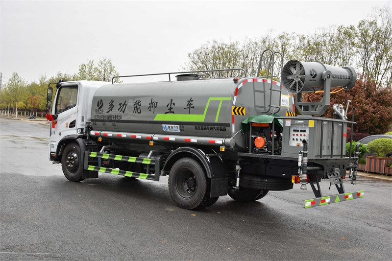 抑塵車具體配置:底盤部分,采用原廠東風底盤,云內150馬力發動機,3800mm軸距,萬里揚6檔變速箱,8.25R20輪胎,國六排放標準,帶空調,氣囊座椅,多功能方向盤,專用部分,罐體采用優質碳鋼材質制作,帶兩個前沖噴頭、兩個后灑噴頭、兩個側噴、后工作平臺、尾部安裝綠化炮,綠化炮可以自行調節(柱狀,大雨,中雨,小雨,霧狀),帶專用灑水泵可以實現自吸自排,帶消防接口,兩根輸水管,加裝30型柴油霧炮,帶底盤合格證和整車合格證