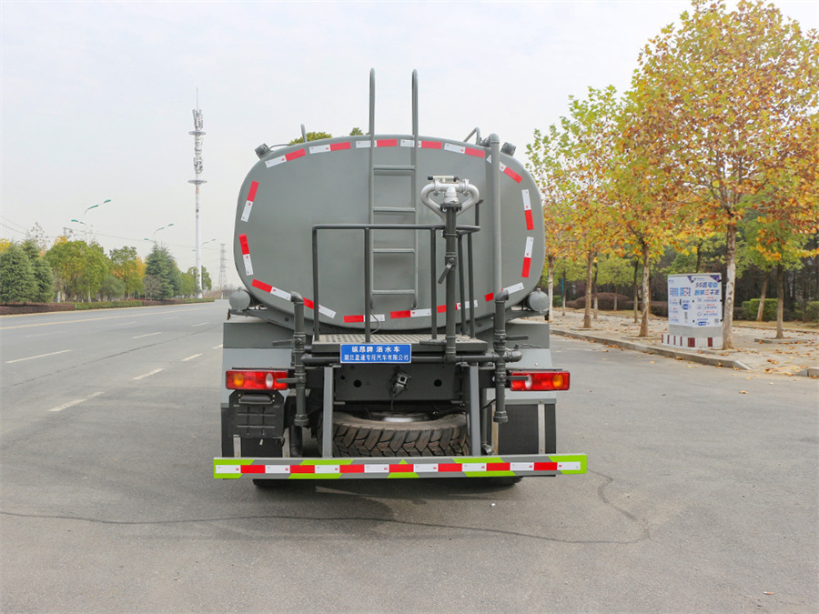 灑水車產品標配前噴(鴨嘴)、后沖、后灑、側噴、后置式工作 平臺,平臺上配置綠化水炮(可 360°旋轉,既可以調成柱狀,也可 以調成霧狀,更可以調成直沖狀、大雨、中雨、小雨、毛毛雨),配 備優質大功率專用灑水泵(可自吸自排,可從河里或池塘抽水到罐體), 取力器,雜物過濾網,消防接口,自流球閥系統、取力器、球閥、濾網 均為國家標準產品,主管道加粗,法蘭墊、法蘭盤加厚,大通徑球閥。 整體具備性能優良安全可靠、效率高、流量大、維修方便等特點
