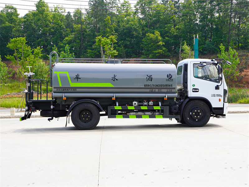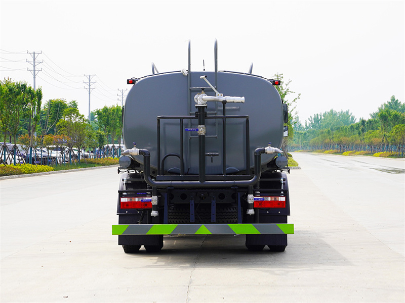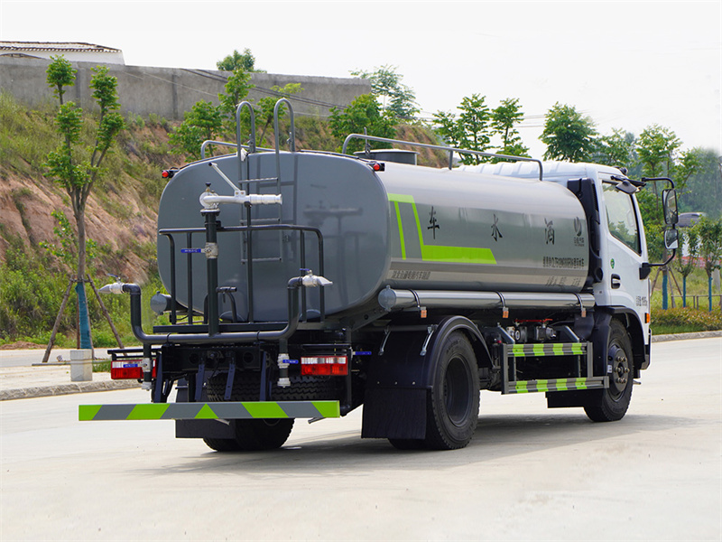 東風多利卡9.3噸灑水車產品標配前噴(鴨嘴)、后沖、后灑、側噴、后置式工作 平臺,平臺上配置綠化水炮(可 360°旋轉,既可以調成柱狀,也可 以調成霧狀,更可以調成直沖狀、大雨、中雨、小雨、毛毛雨),配 備優質大功率專用灑水泵(可自吸自排,可從河里或池塘抽水到罐體), 取力器,雜物過濾網,消防接口,自流球閥系統、取力器、球閥、濾網 均為國家標準產品,主管道加粗,法蘭墊、法蘭盤加厚,大通徑球閥。 整體具備性能優良安全可靠、效率高、流量大、維修方便等特點。